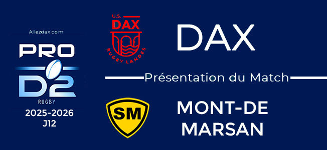 Tel est l’enjeu majeur de ce match du vendredi 28 novembre 2025, dès 19h30 sur le stade Boyau. Depuis la si belle victoire à Biarritz il y a 15 jours, Dax est 14ième avec 2 points d’avance sur Mt2 le 15ième et 3 points sur le dernier Carcassonne. Ces écarts seraient donc augmentés de 4 points si Dax gagnait ce match et Carcassonne nouvelle bonne opération ! perdait à Oyonnax … Dans la lutte pour le maintien, ce serait une