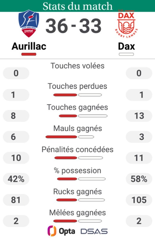Les joueurs entrants ont fait de leur mieux mais pas au niveau de la prod2 pour la majorité c est pas une surprise malheureusement face une valeureuse equipe d Aurillac qui mérite se résultat final.