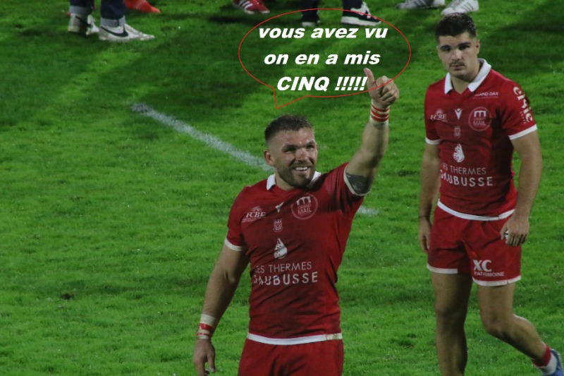 Match solide de nos Dacquois avec une conquête plutôt performante (4 touches laissées en route mais uniquement sur des problèmes de lancers et non pas d'organisation) et une envie de jeu vraiment plaisante. On a été quelque fois un peu trop euphoriques en surjouant, mais c'est assez logique, et ça fait quand même plaisir au public.