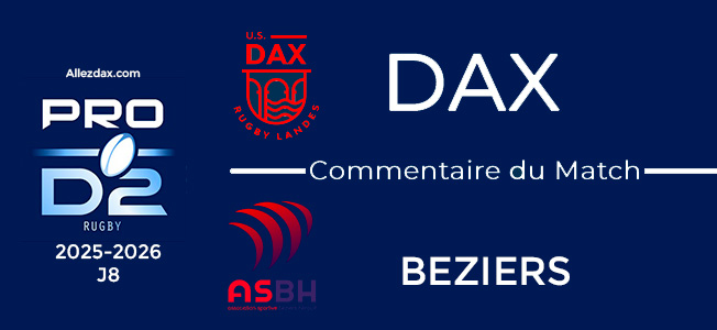 Même si le Béziers de ce soir n'a pas montré grand chose, la construction Dacquoise dans le jeu de passes a été plutôt bonne ce soir, avec de l'accélération et du soutien permanent. En défense, ils n'ont jamais été transperçé, et 2 ou 3 ruck gagnants ont confirmé que Dax était performant ce sur secteur.