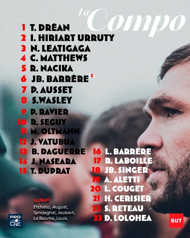 Un grand bravo à tous nos joueurs Dacquois , cette équipe a une âme quand on voit que la sortie de MATTEWS n'a pas même affecté notre conquête et nos contres en touche ça veut dire quand même quelque chose.