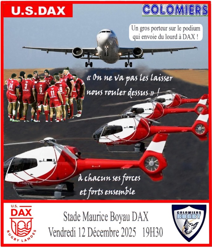 Et puis, une victoire nous offrirait un énorme bol d'air sur le bas du classement... on va donc croiser les doigts et espérer une belle victoire dacquoise ! Allez Dax !