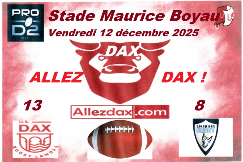 Bravo pour le groupe de joueurs et le staff (toutefois, pourquoi avoir fait re-renter Nacika ... 2 cartons jaunes d'ou carton rouge), , Dax s'est câlé dans des eaux plus calmes du classement de PrD2.