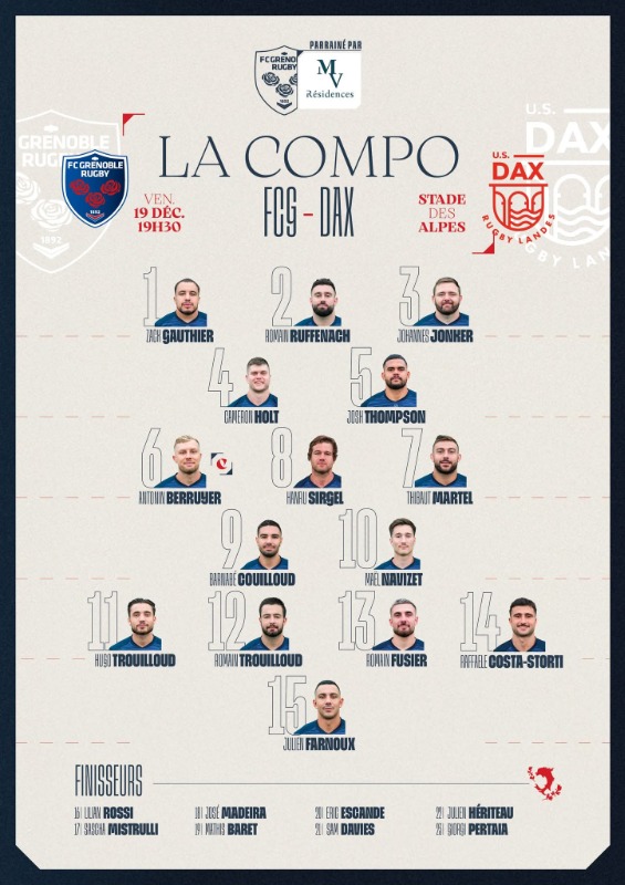 Grenoble-Dax ProD2 J/15 Vendredi 19 Décembre 2025 19H 30
