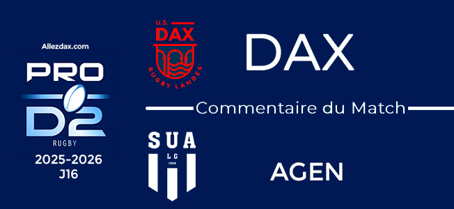 Malgré cela, les Dacquois ont gagné ce match sans laisser aucun point à leurs adversaires. Bravo donc aux joueurs pour cette performance. La mêlée a été solide, la touche légèrement en difficulté, mais je crois plus par un problème de lanceur que par un souci d'organisation.