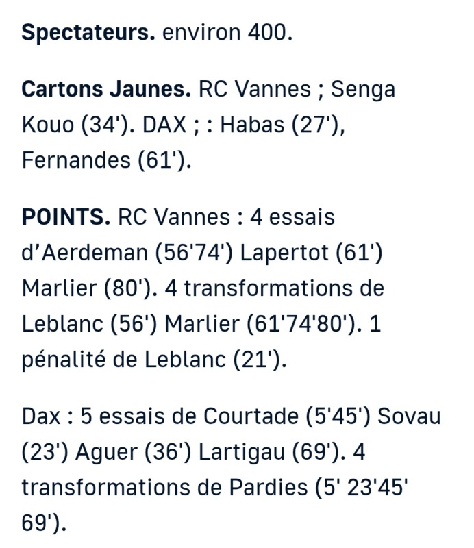 Tout à fait. Victoire avec bonus offensif (5 essais à 2) chez le 2nd de la poule. Bravo à eux.