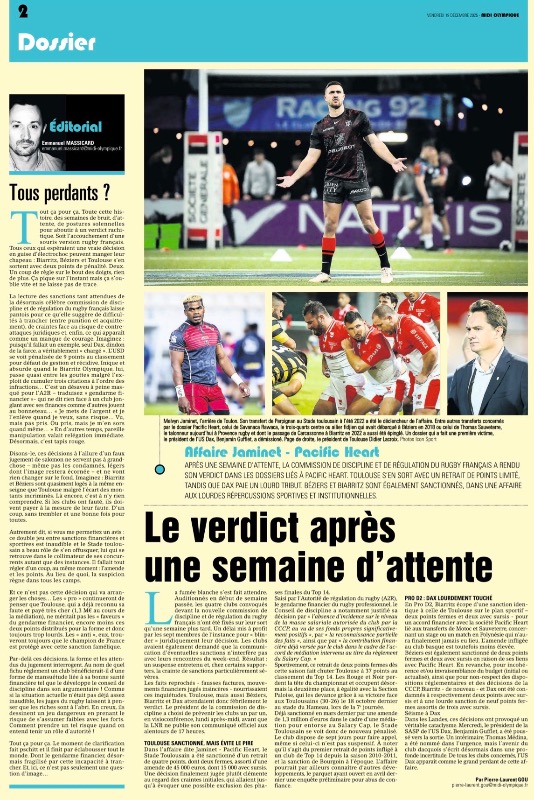 Nous devons encore recevoir le courrier de la Ligue nationale de rugby afin de connaître le détail exact des sanctions. En parallèle, un audit est en cours pour établir précisément la situation financière du club. Nous allons analyser ce qui nous est reproché et déterminer si ces éléments sont contestables. Je n’irai pas défendre l’indéfendable. On assumera les responsabilités qui sont celles du club.