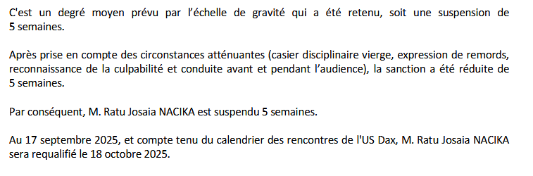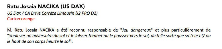 Nacika sera requalifié pour la réception de Béziers. Il ne manquera donc que le déplacement à Aurillac lors du 2ème bloc.